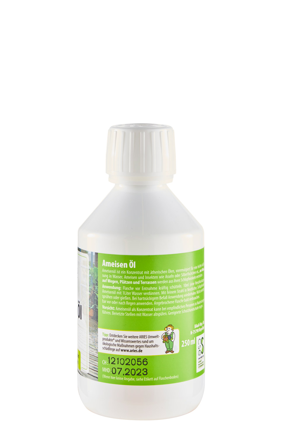 Das ARIES® Ameisenöl ist ein Konzentrat mit ätherischen Ölen, voremulgiert für eine leichte Auflösung in Wasser. Ameisen und Insekten wie Asseln oder Silberfischchen etc., am Haus, auf Wegen, Plätzen und Terrassen werden aus ihren Schlupfwinkeln vertrieben.