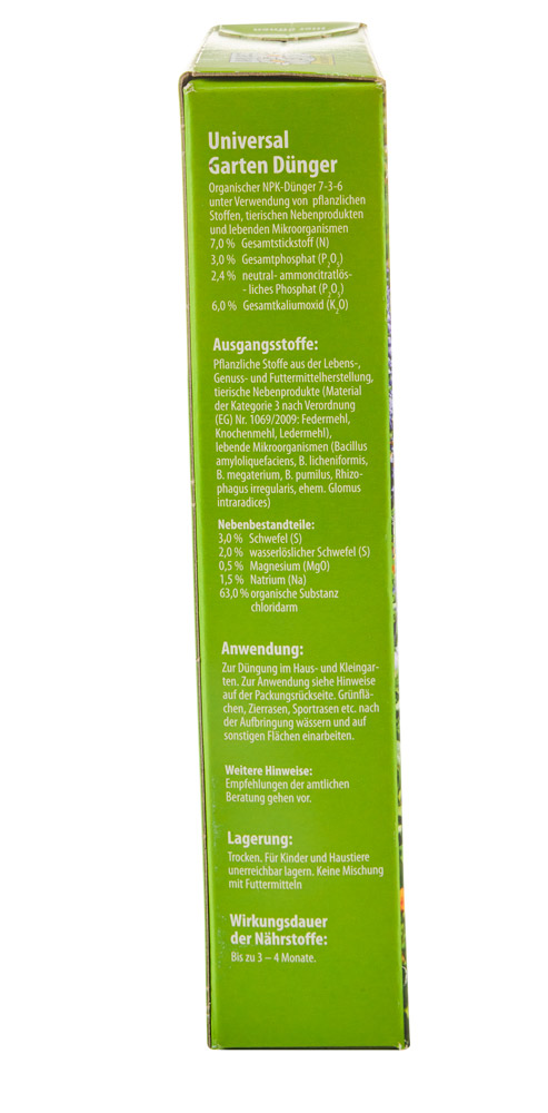 Organischer NPK-Langzeitdünger 7-3-6 mit Schwefel, fördert die Humusbildung und wirkt wie ein Nährboden auf die Mikroorganismen in der Erde.