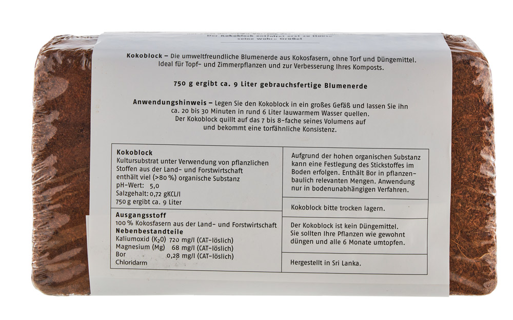 Der KOKOBLOCK ist kein Düngemittel – Sie sollten Ihre Pflanzen wie gewohnt düngen und ca. alle 6 Monate umtopfen.