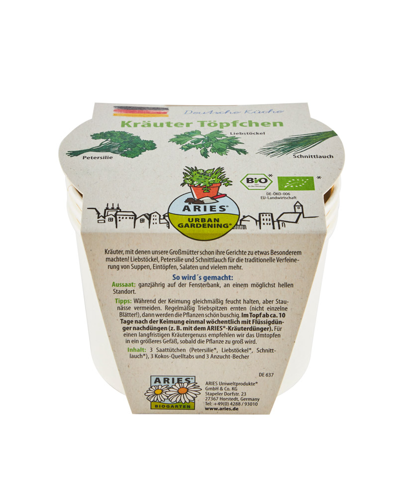 Mit dem ARIES®-Kräutertöpfchen „Deutsche Küche“ holen Sie sich den Garten in die Küche.