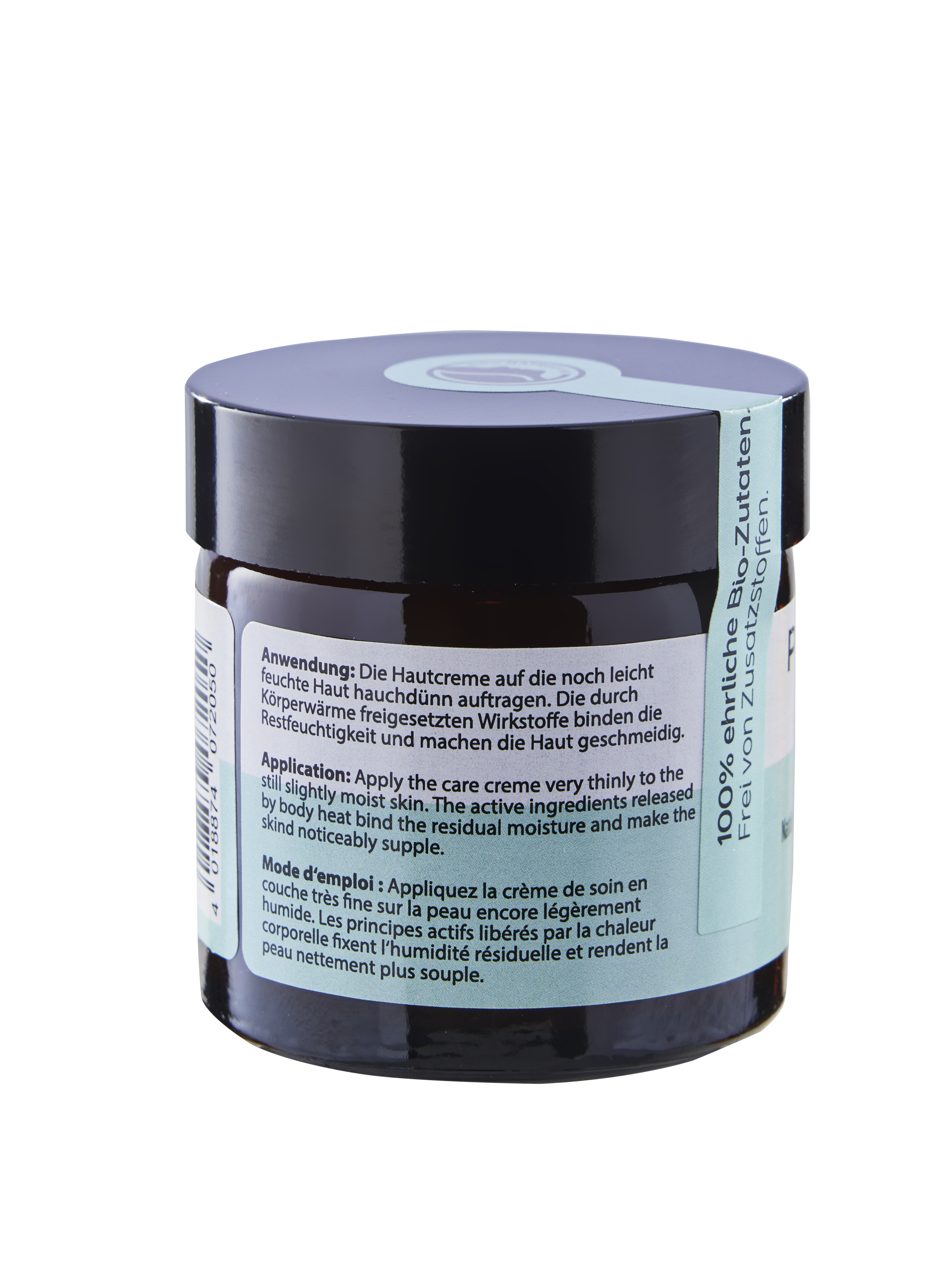 Anwendung: Die Hautcreme auf die noch leicht feuchte Haut hauchdünn auftragen. Die durch Körperwärme freigesetzten Wirkstoffe binden die Restfeuchtigkeit und machen die Haut geschmeidig.